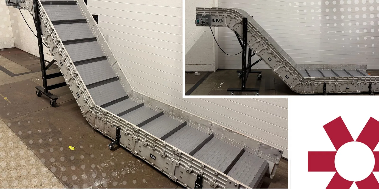 DynaCon modular conveyors and DynaPro low profile conveyors replaced old equipment, solving critical part containment issues, reducing operator cleanup time, and allowing for conveyor mobility for changeovers. A quality and effective belt conveyor system with flights/cleats and sidewalls were identified as key components to containing parts. The highly flexible modular designs that included casters would allow for quick and easy daily mold change overs.